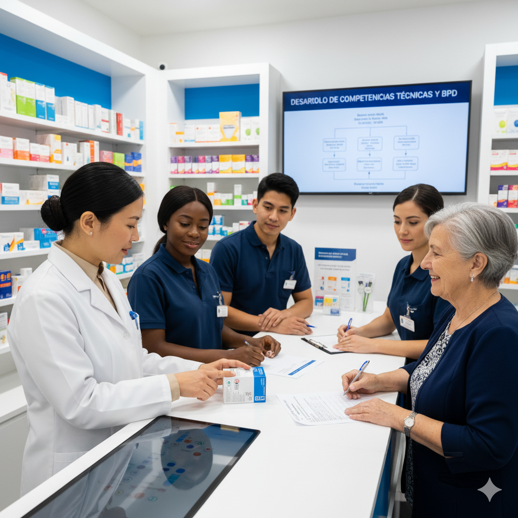 Cursos prácticos y especializados para el personal auxiliar y técnico. La formación se centra en la aplicación de las Buenas Prácticas de Dispensación (BPD), el protocolo de atención al cliente, el manejo de productos sensibles y la correcta documentación de los procesos diarios.
